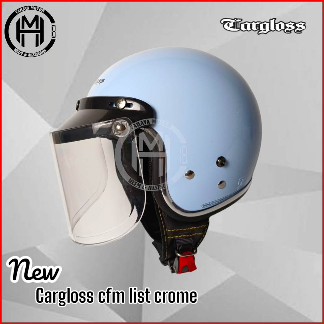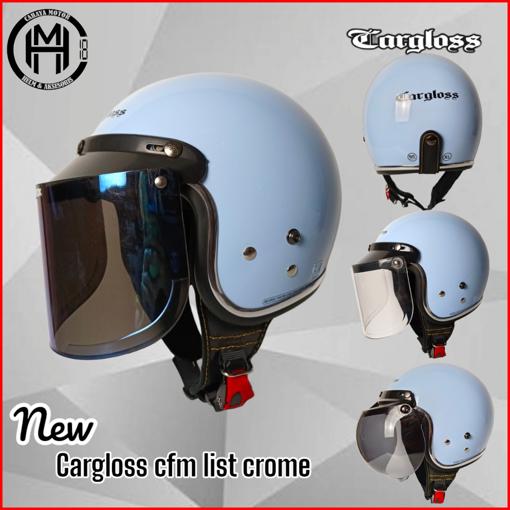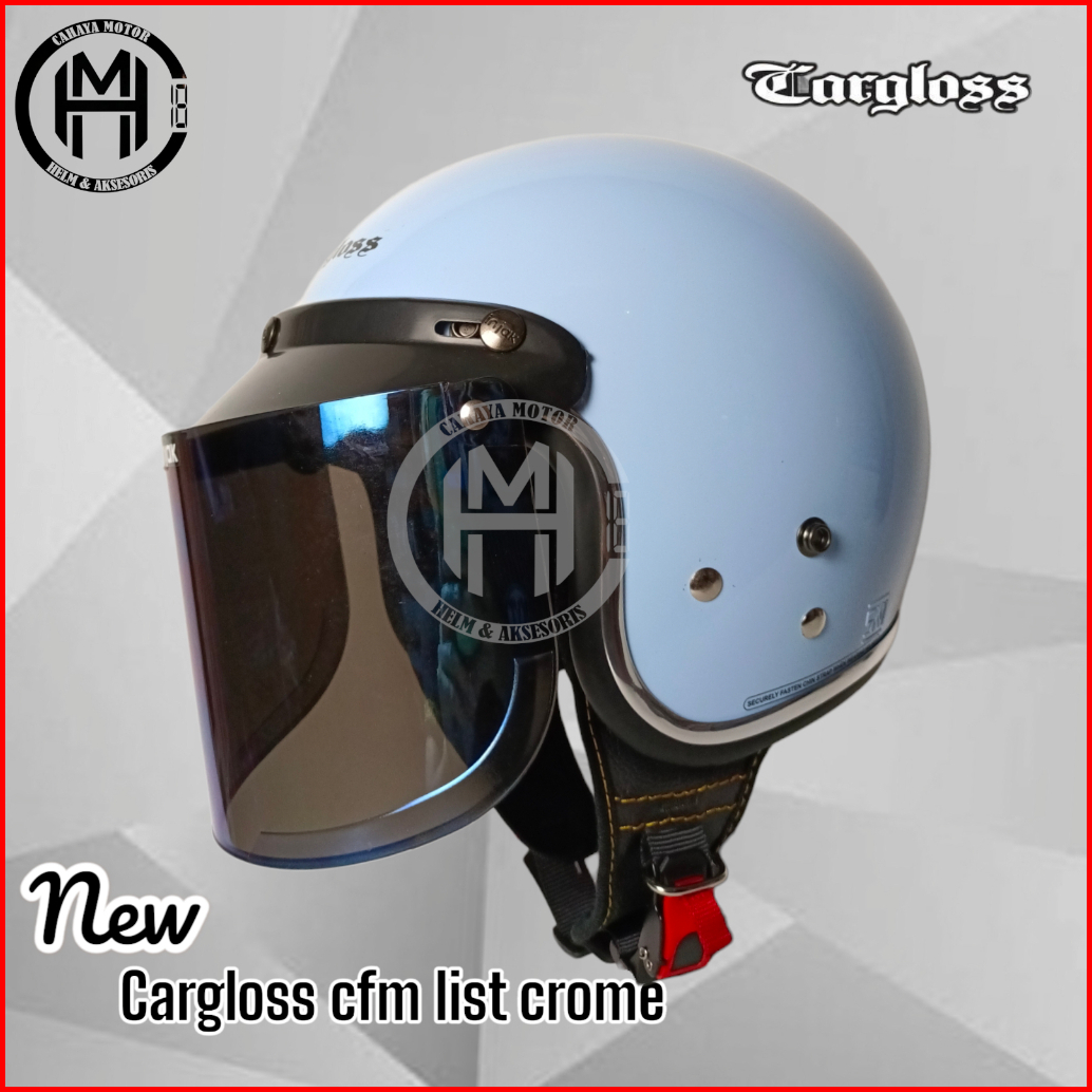 Helm Cargloss Cfm2 List Chrome Ligt Blue Paket Kaca Original Half Face