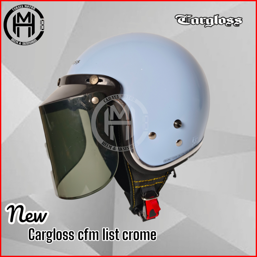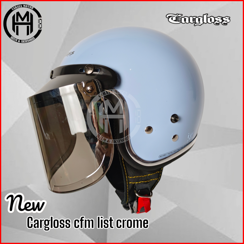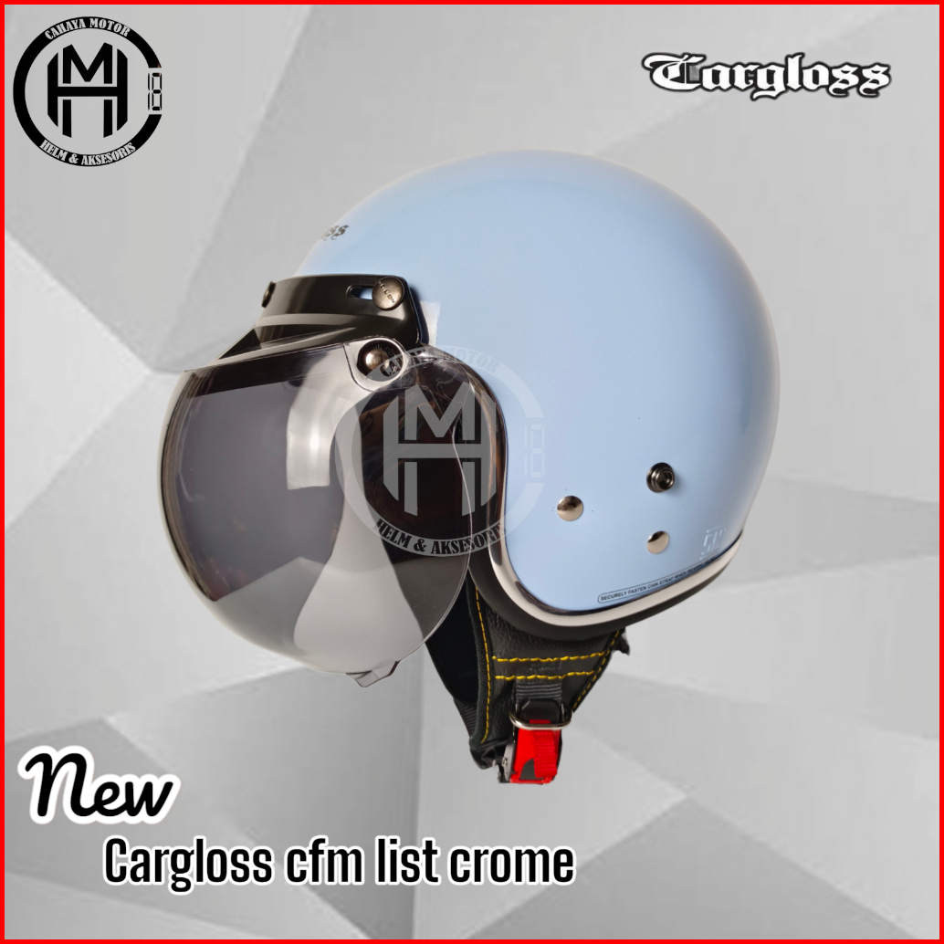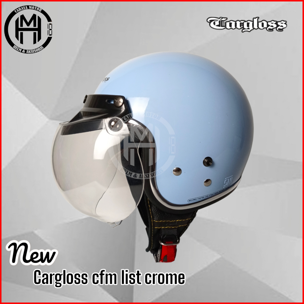 Helm Cargloss Cfm2 List Chrome Ligt Blue Paket Kaca Original Half Face