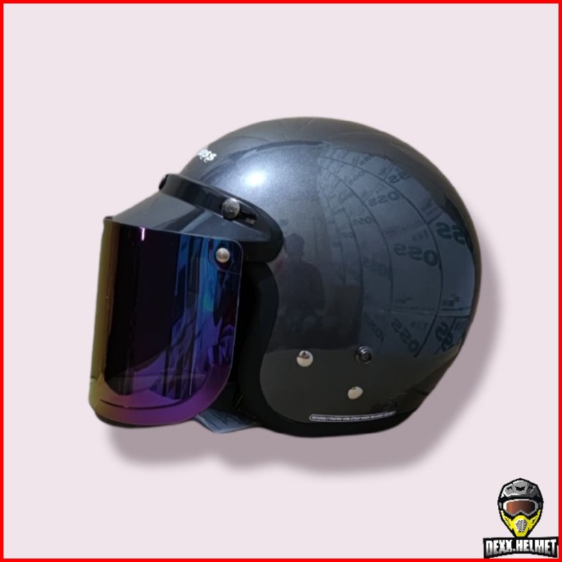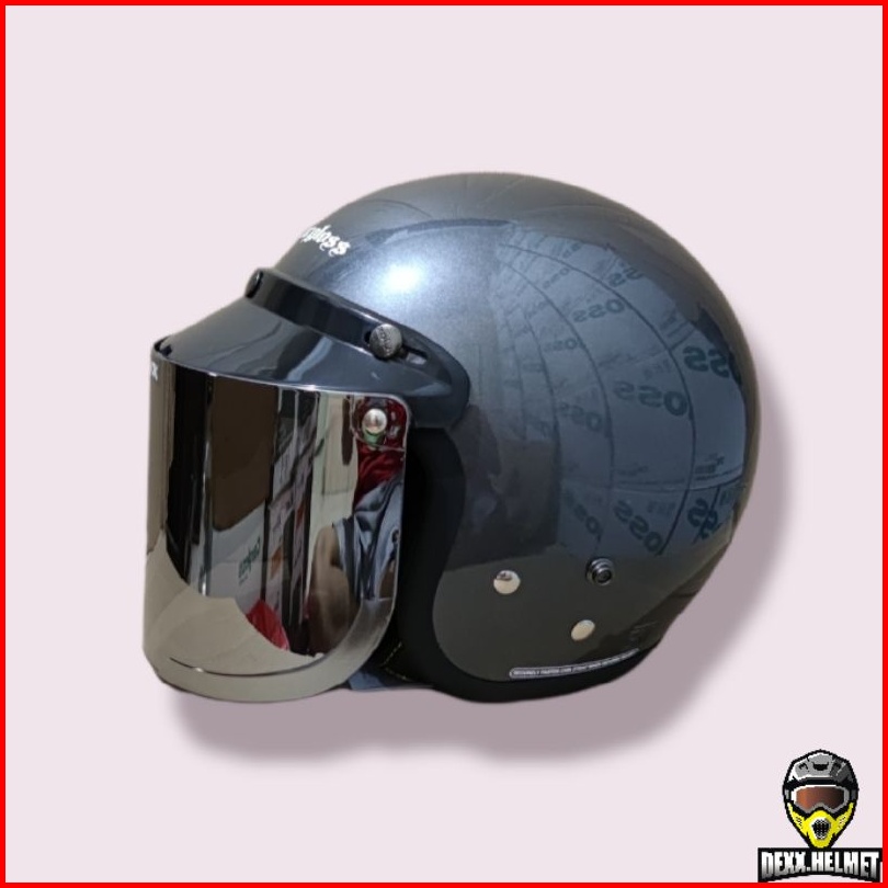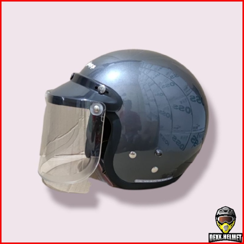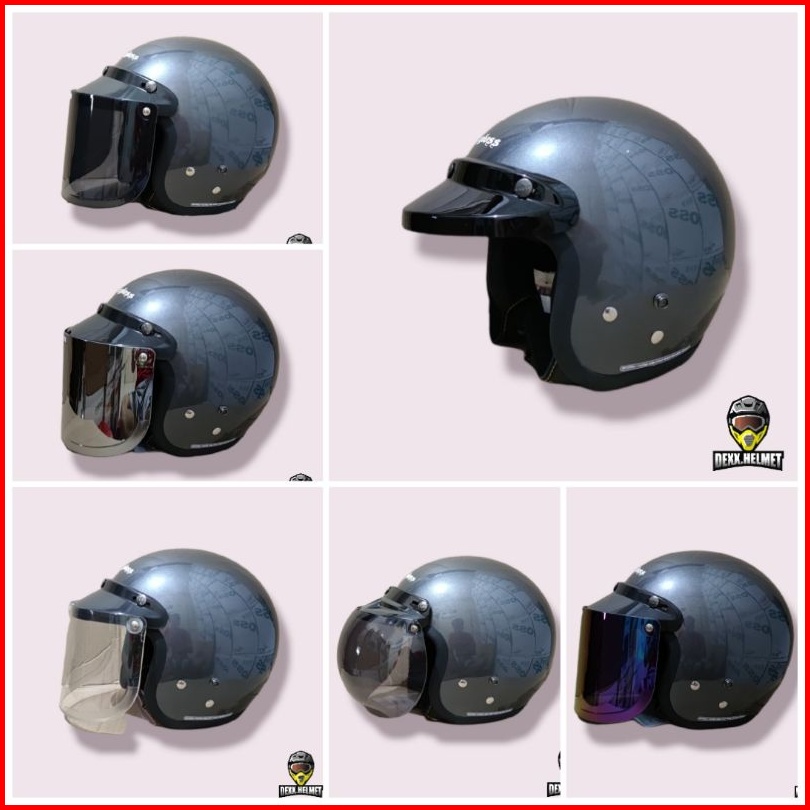 Helm Cargloss Retro Cfm Abu Abu Glossy Anchore Grey Original Kaca Datar