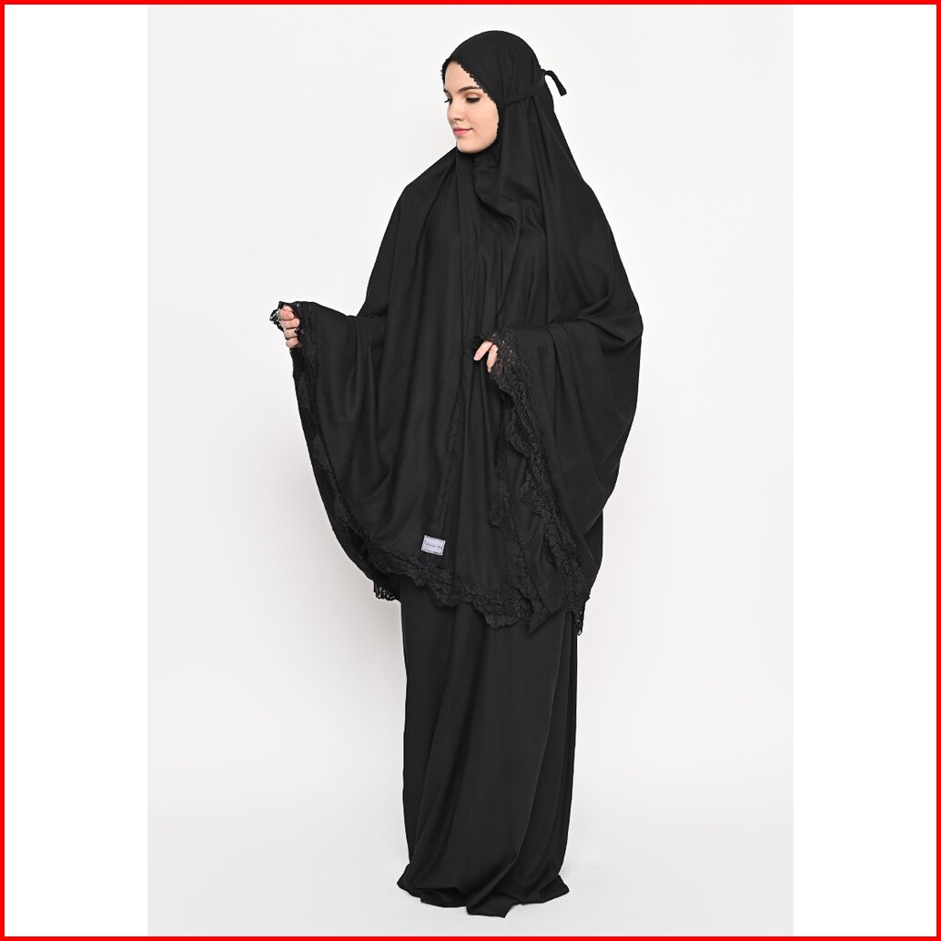 Nakajima-mukena Calla Black Daily Umroh Haji Prayer Set Katun Rayon