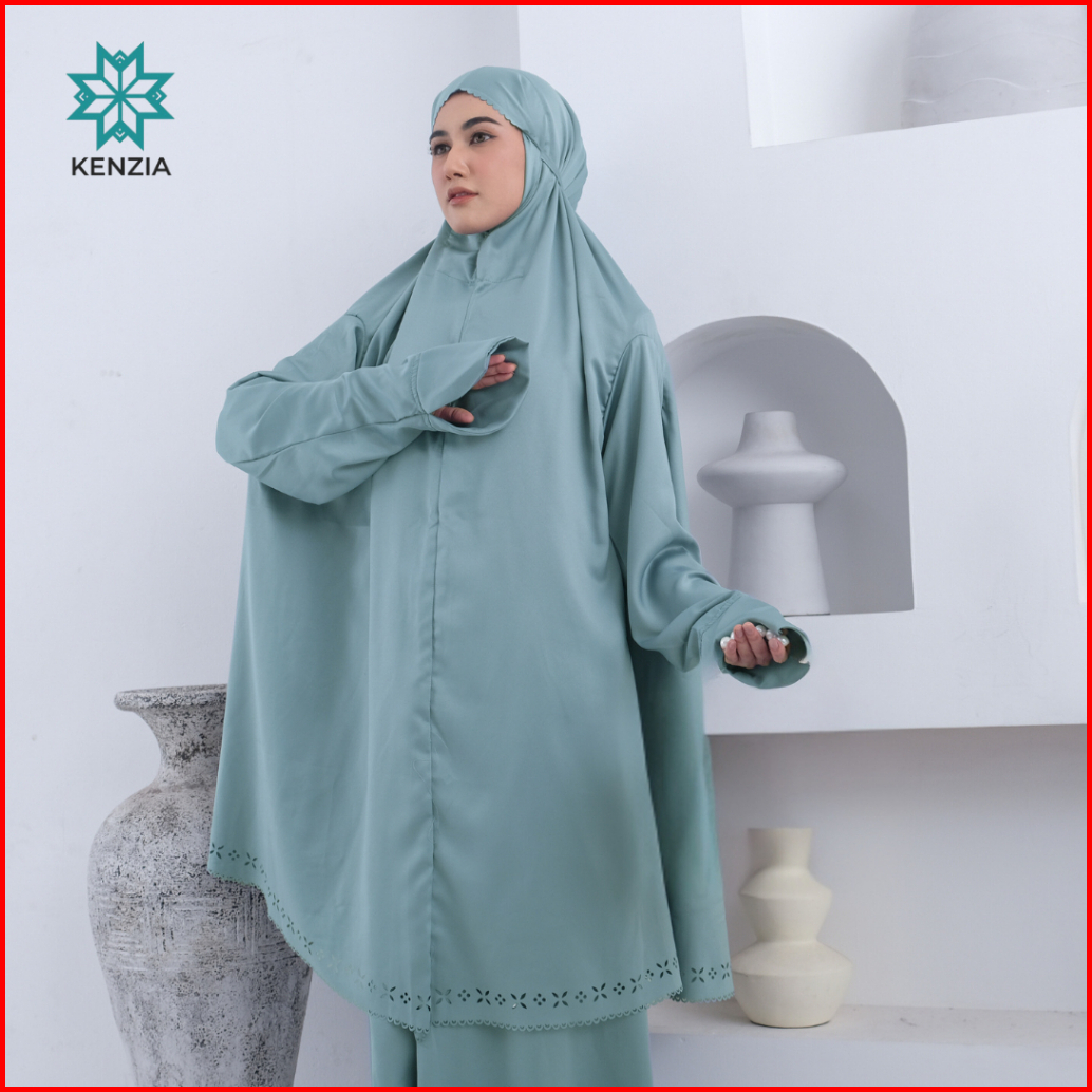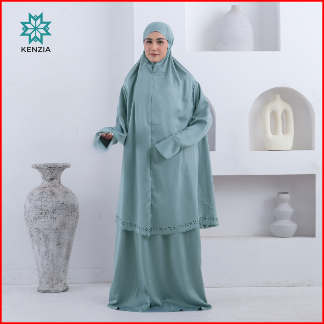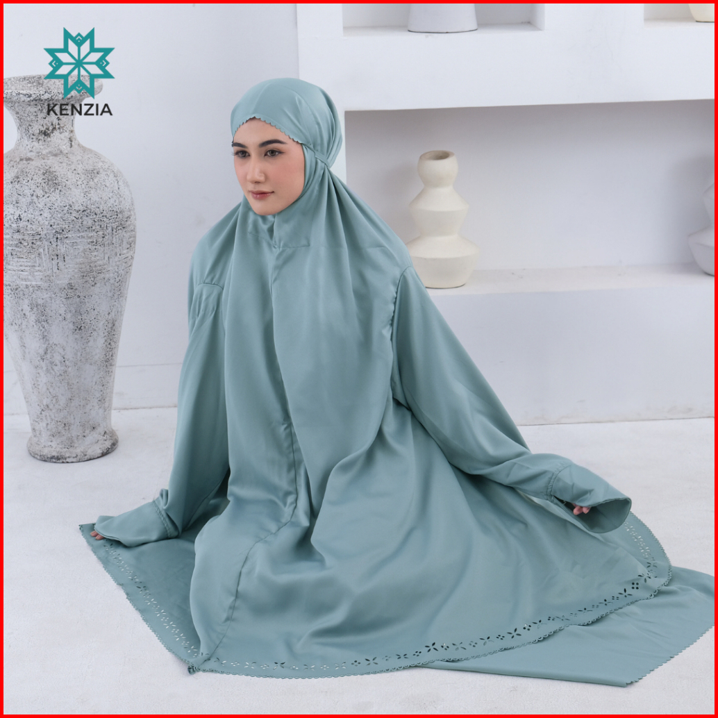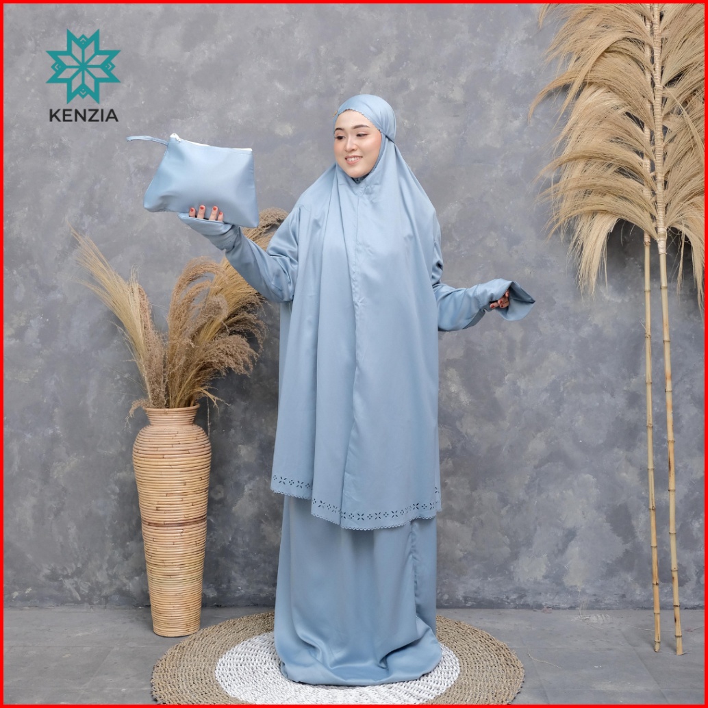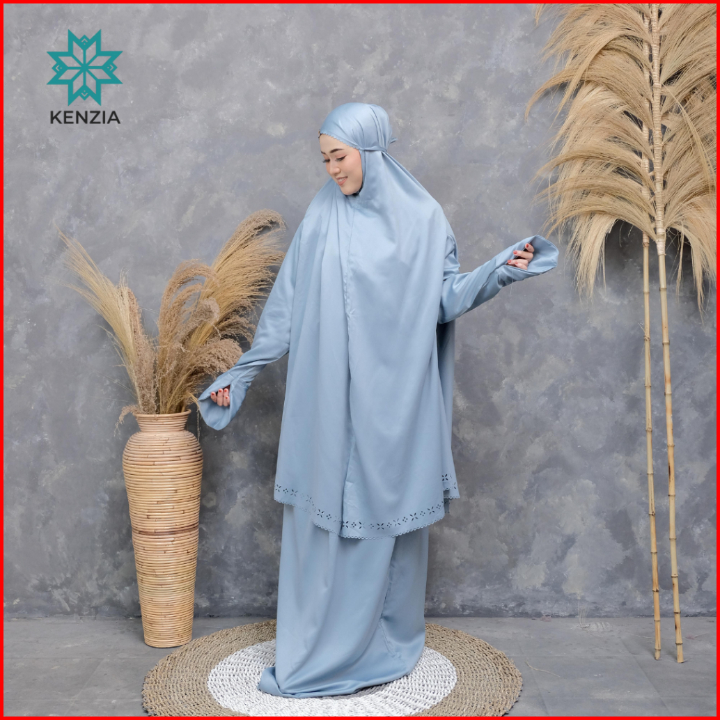 Kenzia - Mukena Berlengan Dewasa Haji Dan Umroh Laser Cut Velvet Silk Tahsina