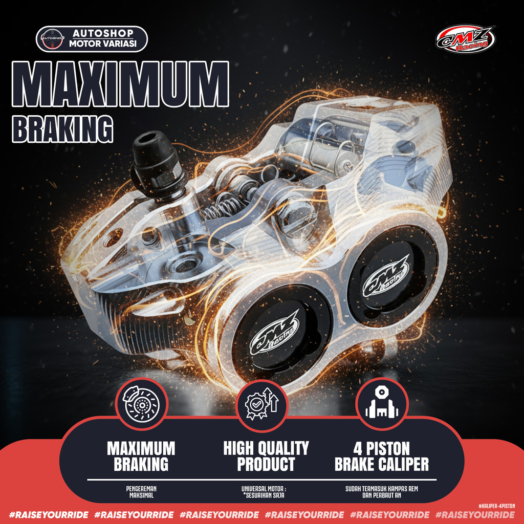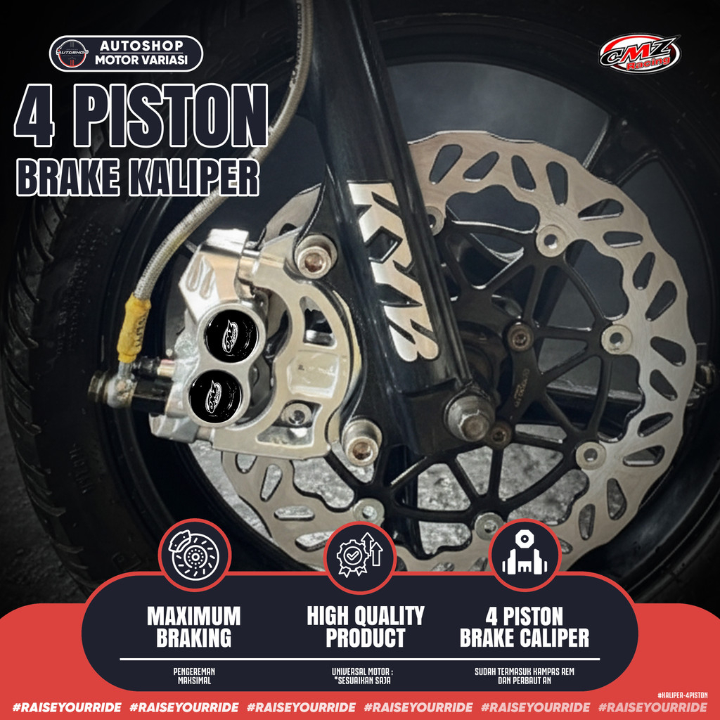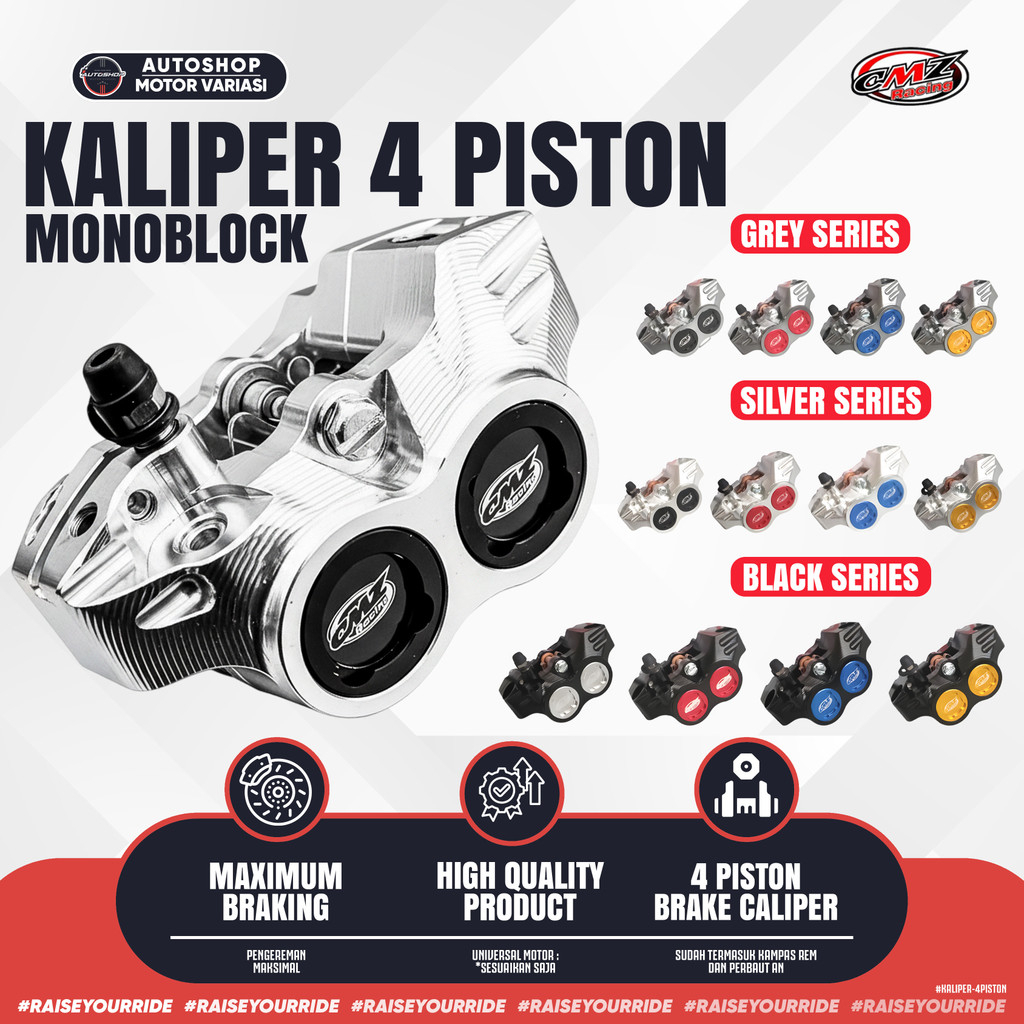 Kaliper Cakram 4 Piston F1 FORMULA-1 Monoblock FULL CNC Universal Motor + Kampas Baut Nipple Selang Rem