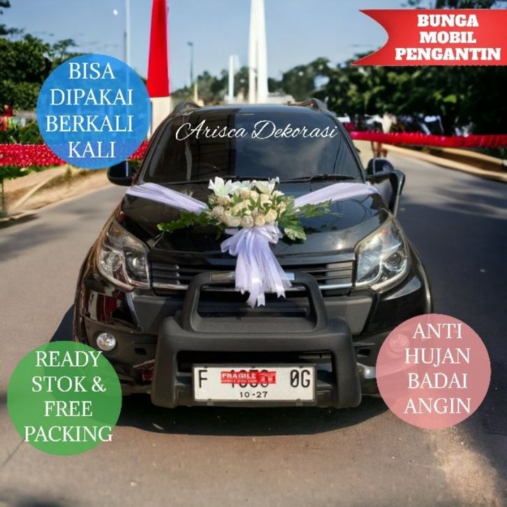 ( HARGA PROMO ) BUNGA MOBIL PENGANTIN - PITA HIASAN MOBIL PENGANTIN - DEKORASI DEKOR MOBIL PENGANTIN MURAH MEWAH 1 SET