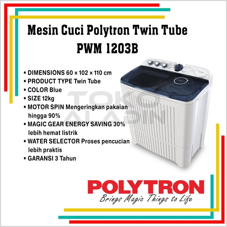 Mesin Cuci Polytron Twin Tube PWM 1203B