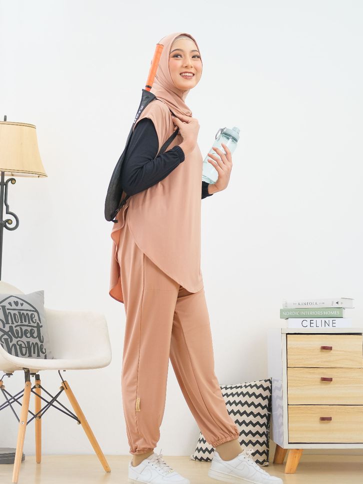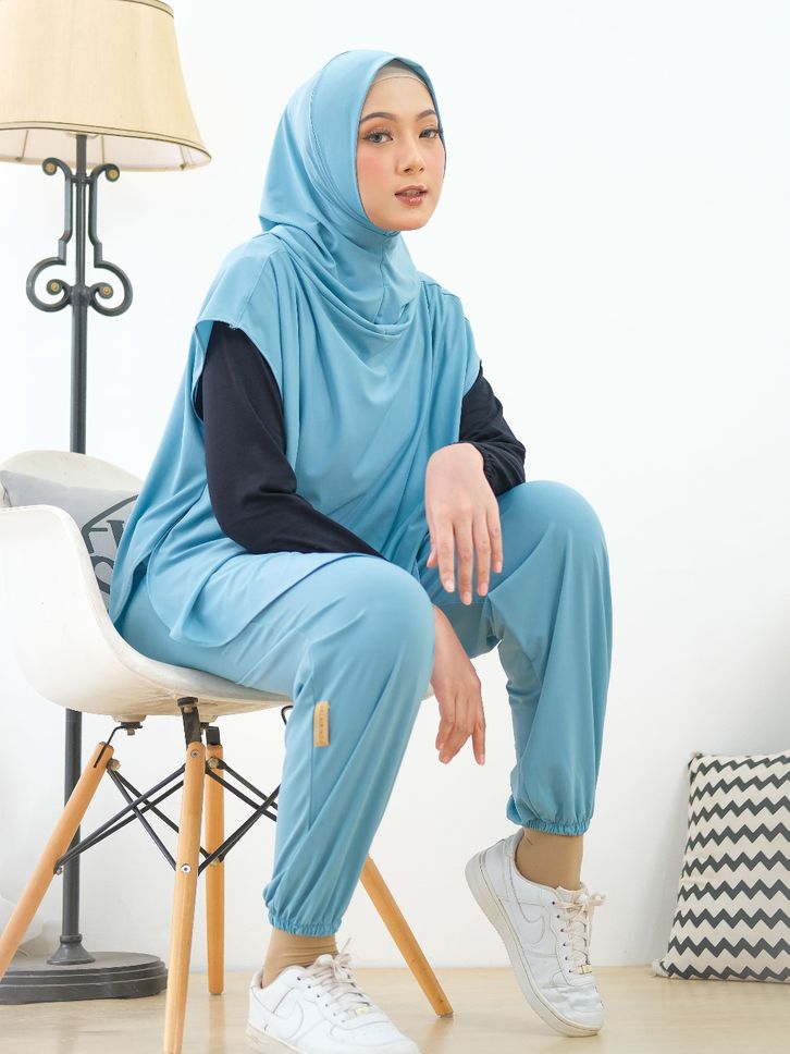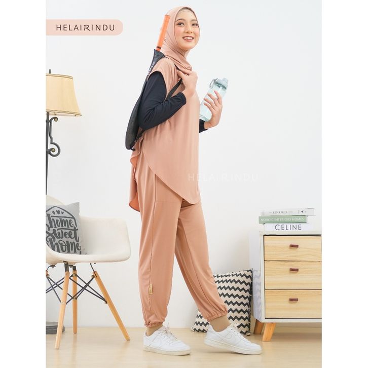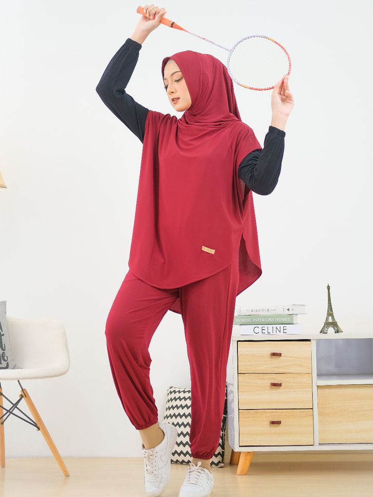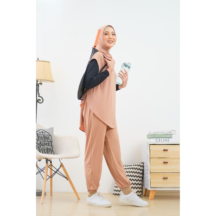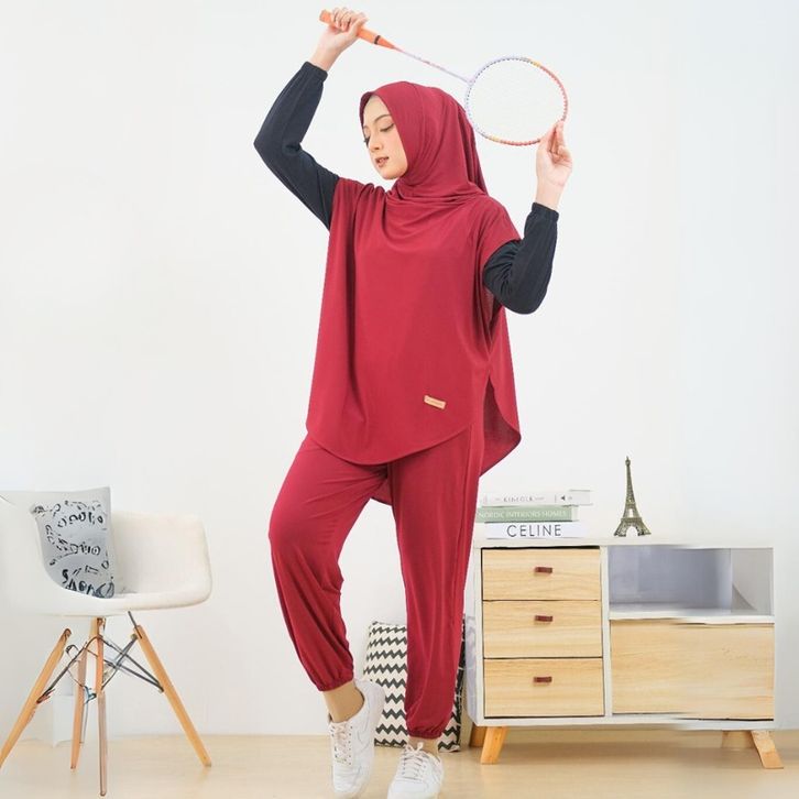 Setelan Hijab Olahraga Wanita Outer Hijab dan Celana One Set Wanita Olahraga Bahan Royal Jersey Adem Nyaman Stylish