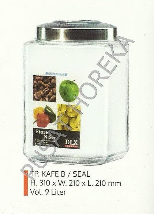 Glass Canister / Toples Segi DLX Kafe B Kapasitas 9Liter VIA