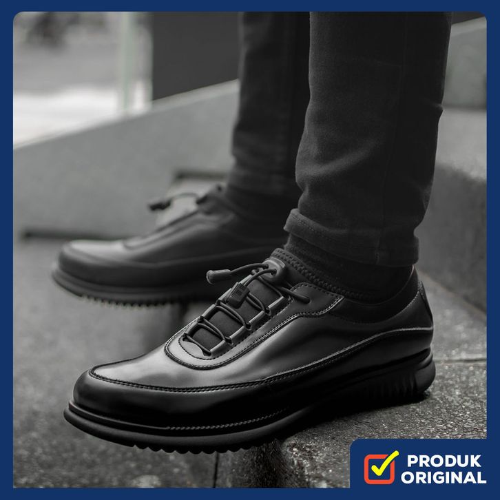WAVE BLACK ORIGINAL x VOLVE PROJECT Sepatu Formal Full Hitam Tali Pria Pantofel Kerja Kantor Dinas Resmi Guru Kantoran