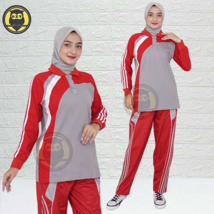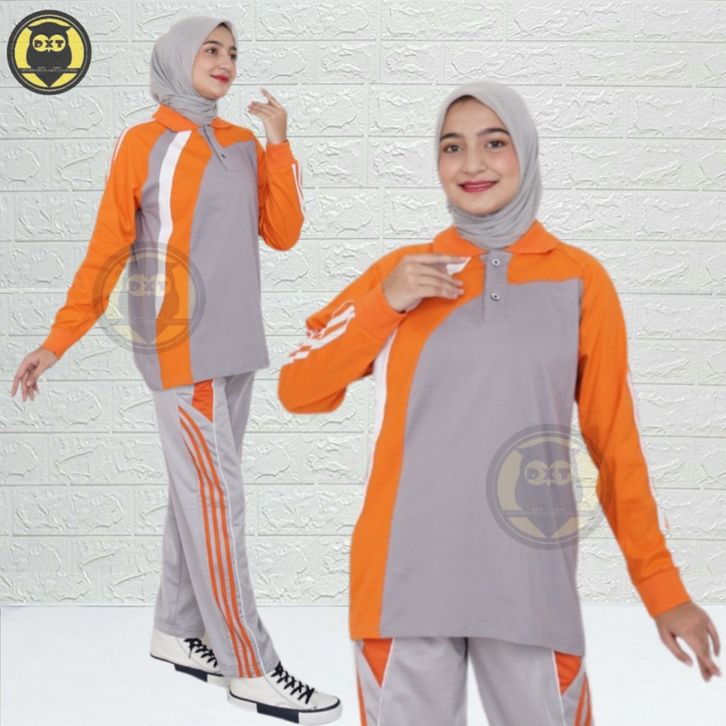Setelan Olahraga Cewek Pria Lengan Panjang Baju Senam Wanita 1 Set Kaos Olahraga Setelan Bahan Katun Adem Lembut nyaman