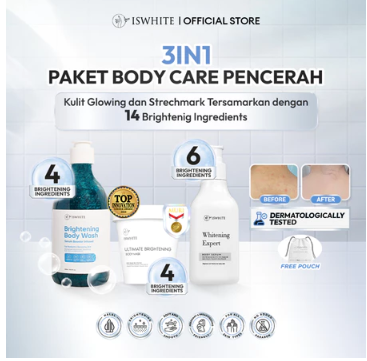 ISWHITE Bodycare Glowing Level Up - Paket Perawatan Tubuh Menyamarkan Noda Hitam dan Hiperpigmentasi - Sabun Mandi Cair