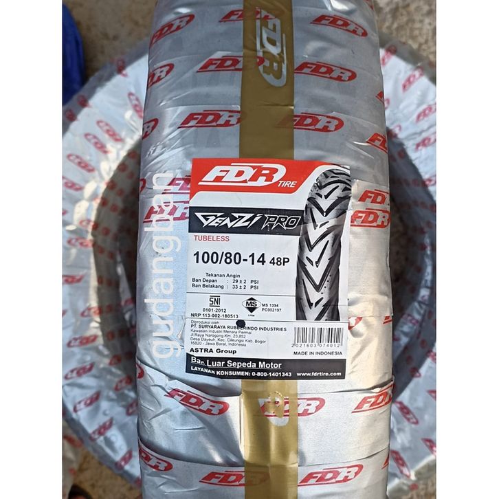 Ban Luar Motor Matic FDR Genzi Pro Uk 100/80-14 Ring 14 Tubeless Produksi Terbaru