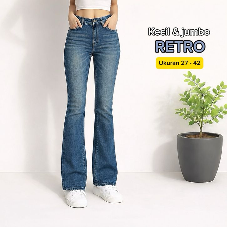 Celana Cutbray Wanita Highwaist Jeans Retro Premium Bahan Tebal & Tidak Luntur Kekinian Vintage