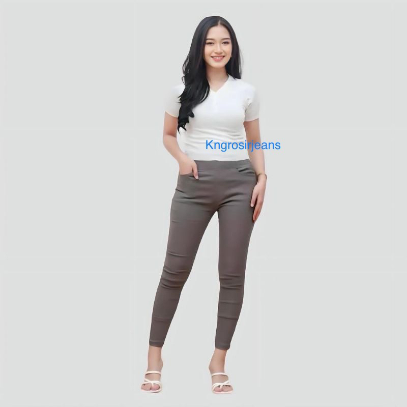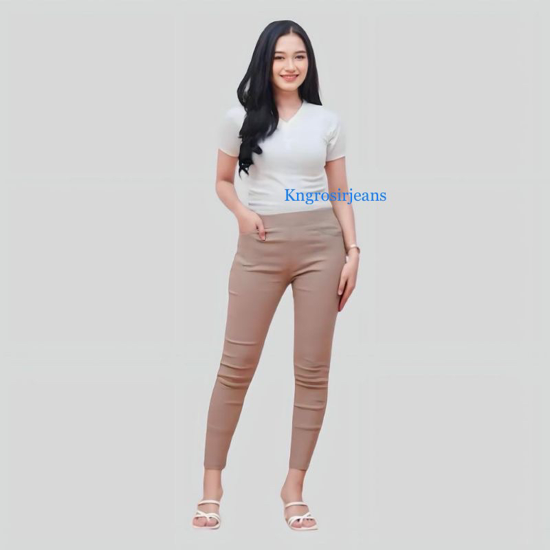 (Gratis Ongkir) CELANA CHINO WANITA BAHAN STREET MOCCA, HITAM, KREM, ABU TUA