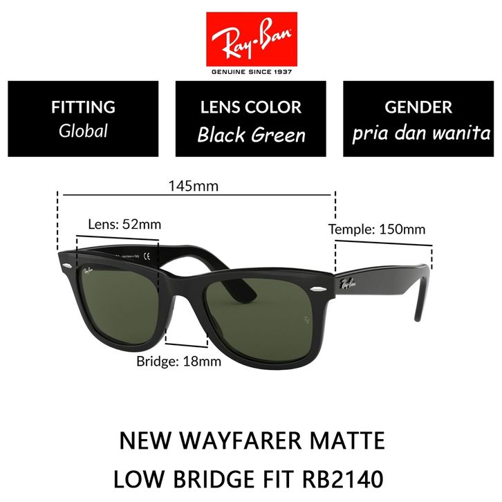 New KACAMATA Ray-Ban WAYFARER CLASSIC Original RB2140 Sunglasses Black Black pria wanita