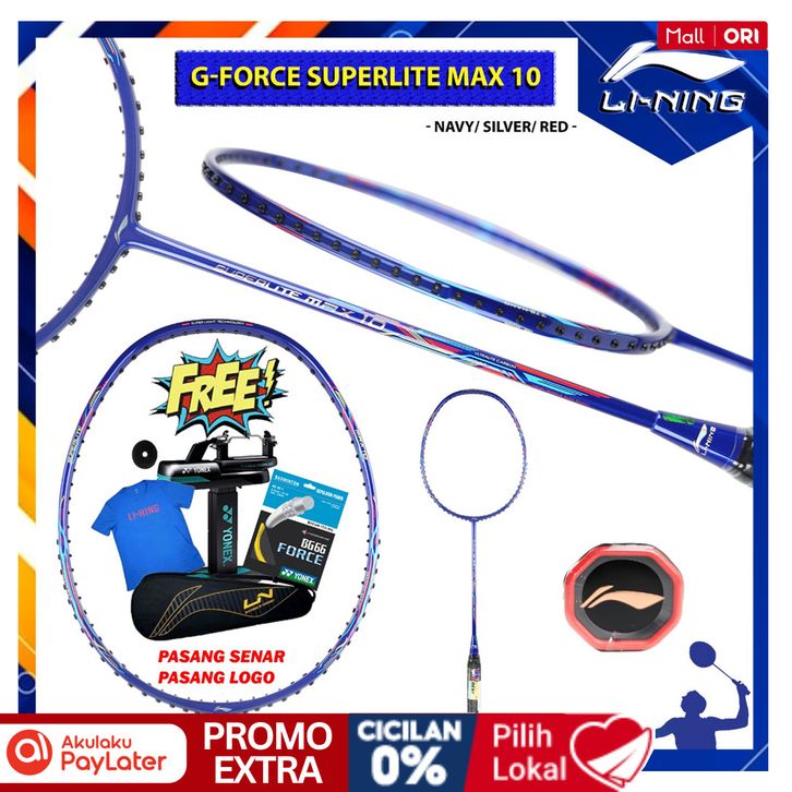 TERLARIS-RAKET BADMINTON LINING G FORCE SUPERLITE MAX 10 NAVY SILVER RED