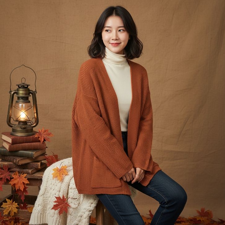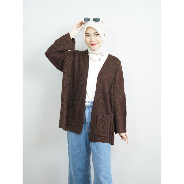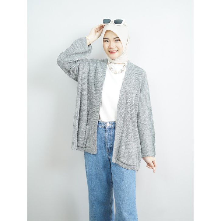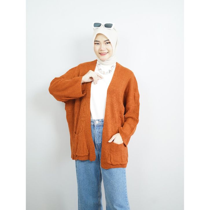 Cardigan Wanita Oversize Motif Polos Outer Knit Lengan Panjang Atasan Wanita Korean Style