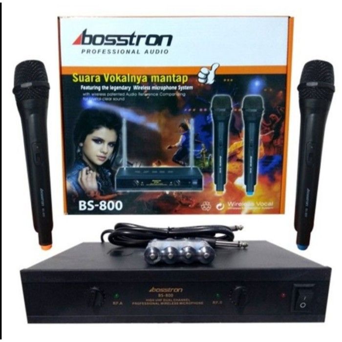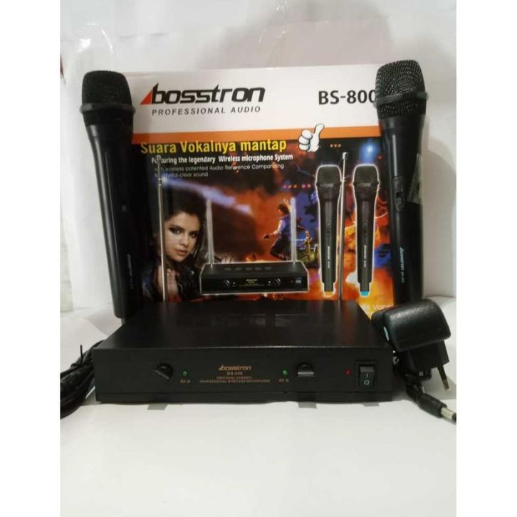 MIC MICROPHONE WIRELESS BOSSTRON BS-800 2 MIC SUARA JERNIH DAN EMPUK TERLARIS