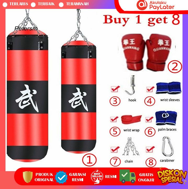 PROMO!!!(MAINANKYU) PAKET LENGKAP SARUNG SAMSAK TINJU MMA MUAY THAI BOXING (80CM DAN 100CM).