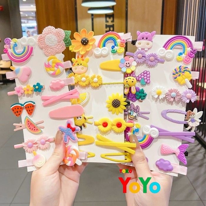 Jepitan Rambut Anak Korea Jepit Rambut Bayi Set Isi 14 Pcs 3D Set Lucu - Kuning