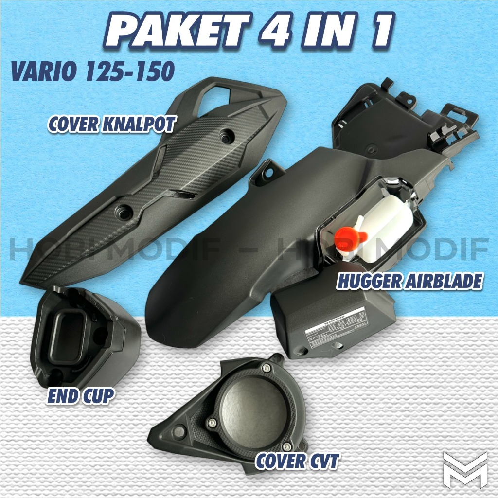 (Paketan 4 In 1) Hugger Spakbor Airblade Cover Knalpot Honda Cover Cvt End Cup / Corong Knalpot Vario 125/150 Old New