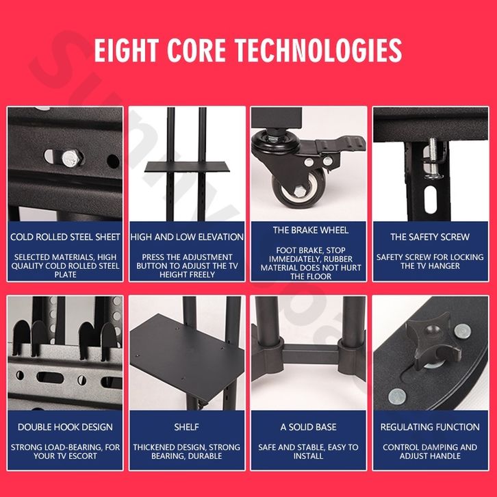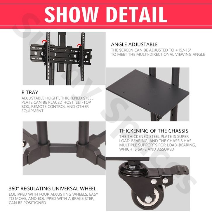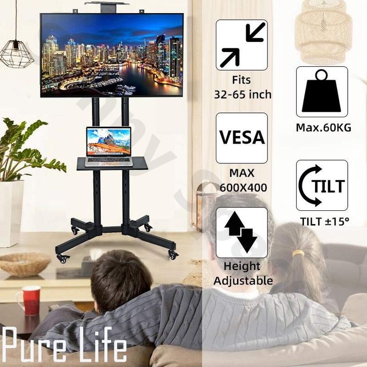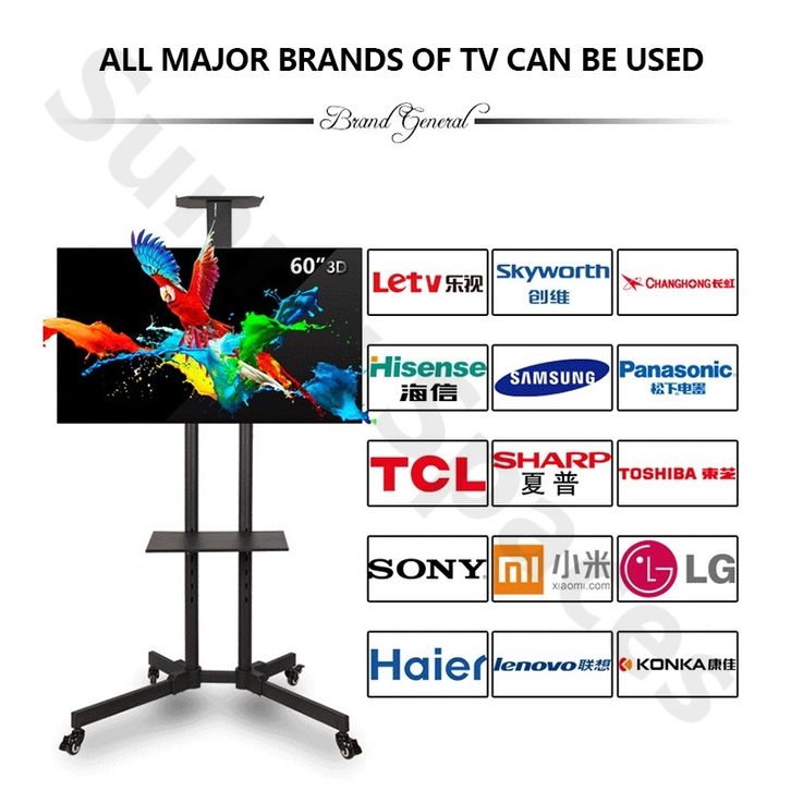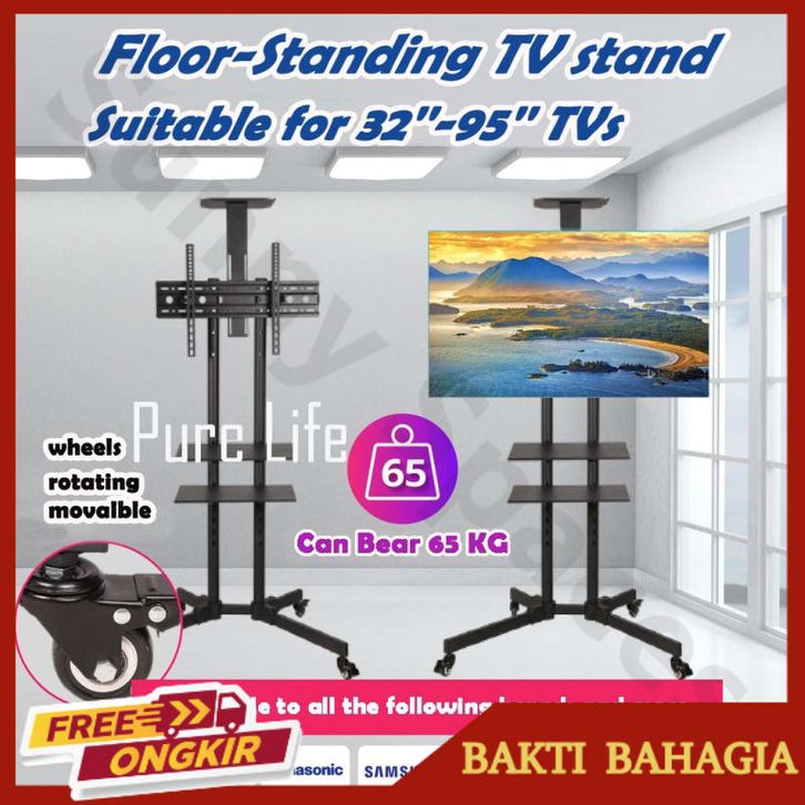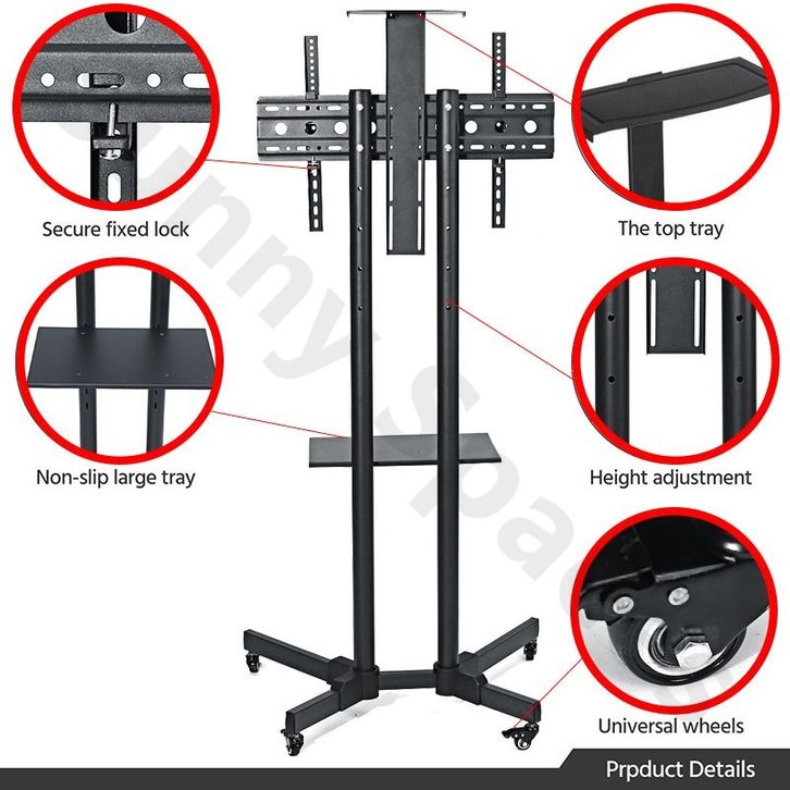 Standing Mobile TV Stand 32-75 Inch Adjustable Universal Bracket Televisi Roda Stand with Tray