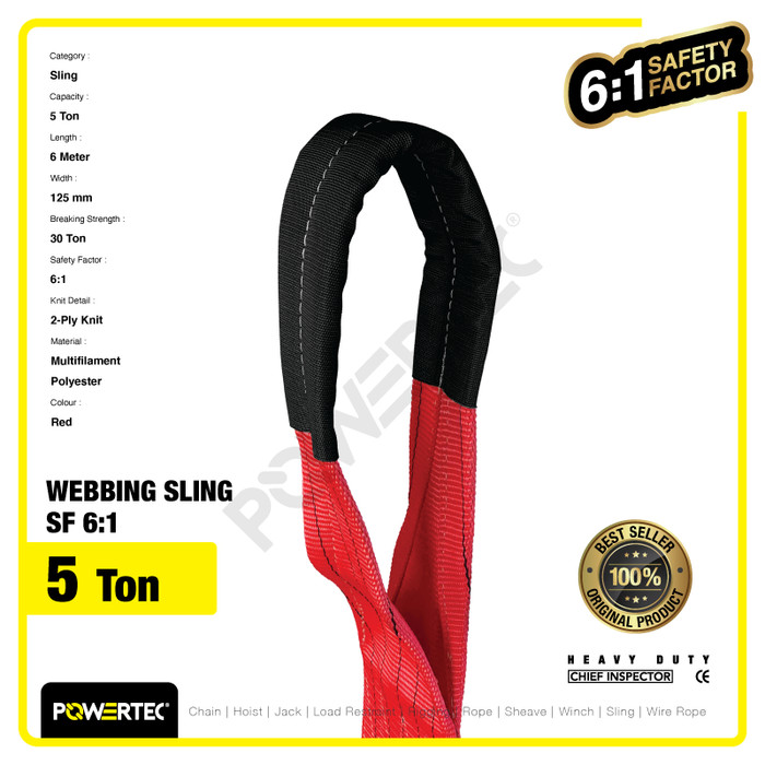 WEBBING SLING BELT / TALI ANGKAT 5 TON X 6 METER POWERTEC DOUBLE PLY