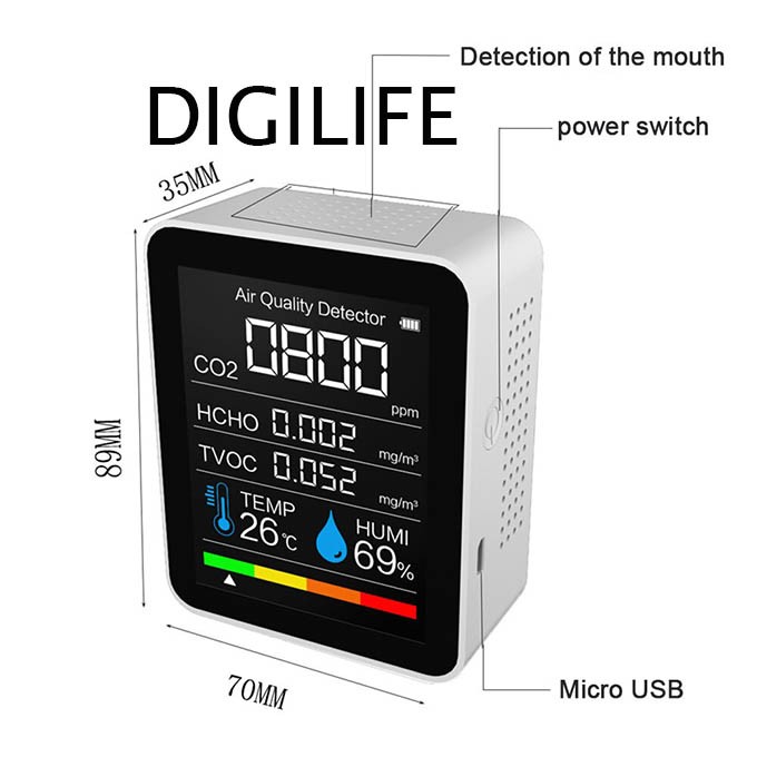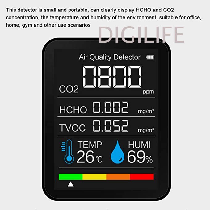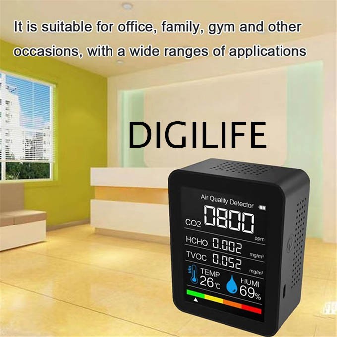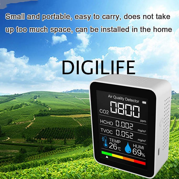 AIR QUALITY MONITOR CO2 HCHO TVOC HUMIDITY TEMPERATURE DETECTOR TESTER