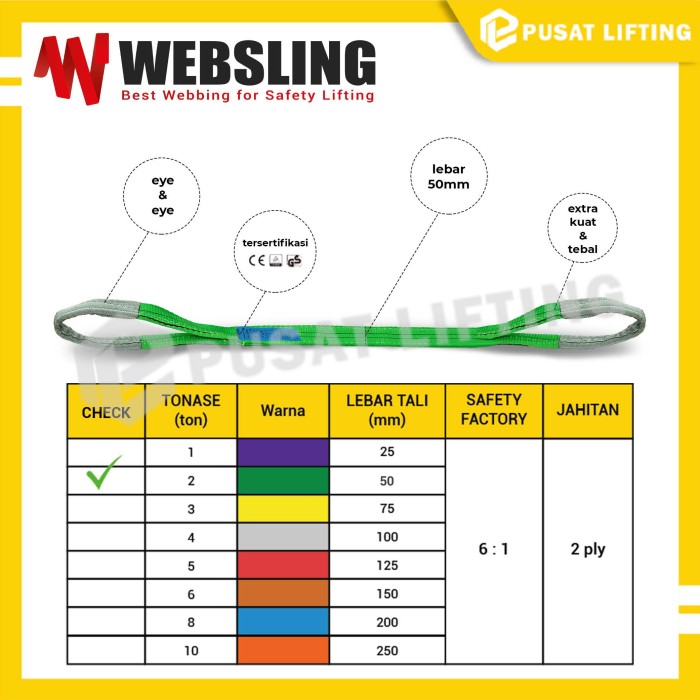 WEBBING SLING 2 TON 5 METER WEBSLING SLING BELT DOUBLE PLY POLYESTER
