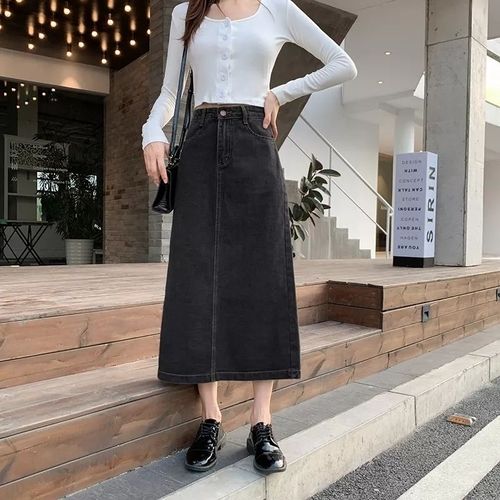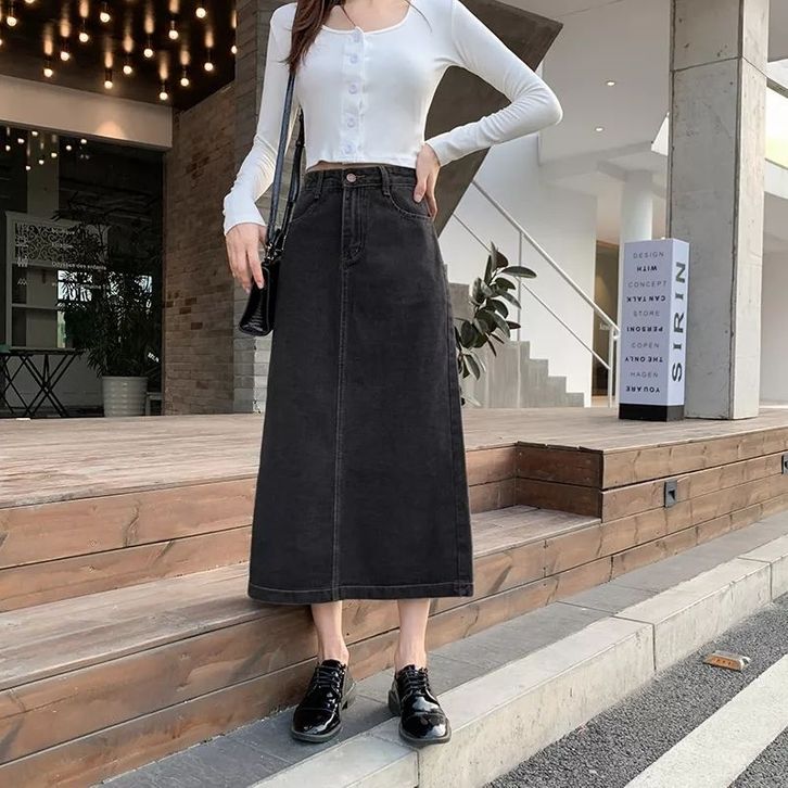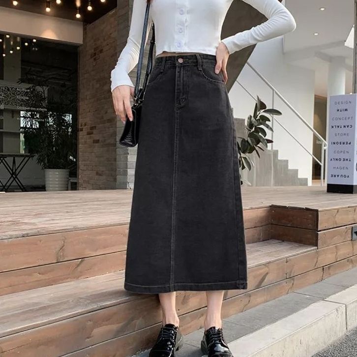 Rok Jeans Span Long Skirt Jeans Rok Jeans Panjang Rok Casual Fashion Wanita Rok Maxi Bahan Denim Lembut Halus Premium