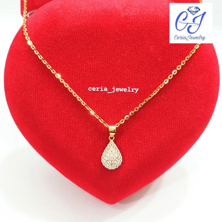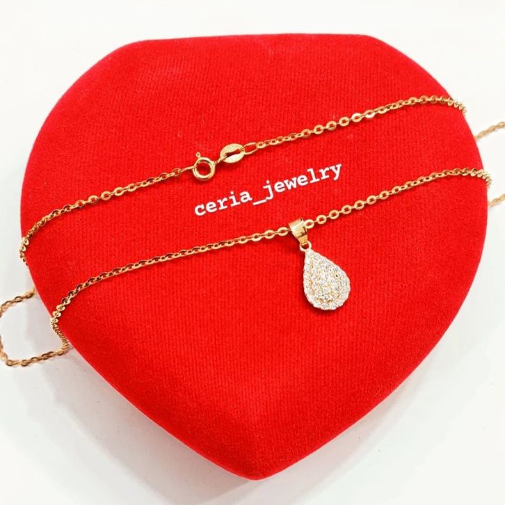 Kalungg Perak Asli Silver 925 Lapis Ems Model Nori + Lontin Oval Kecil Tetas Air - Perhiasan Perak Wanita