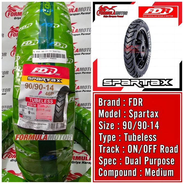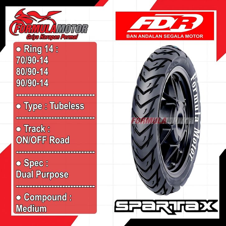 FDR Spartax Uk 90/90-14 Tubeless (Dual Purpose) - Ban Motor Matic Beat Mio Vario Scoopy Ring 14