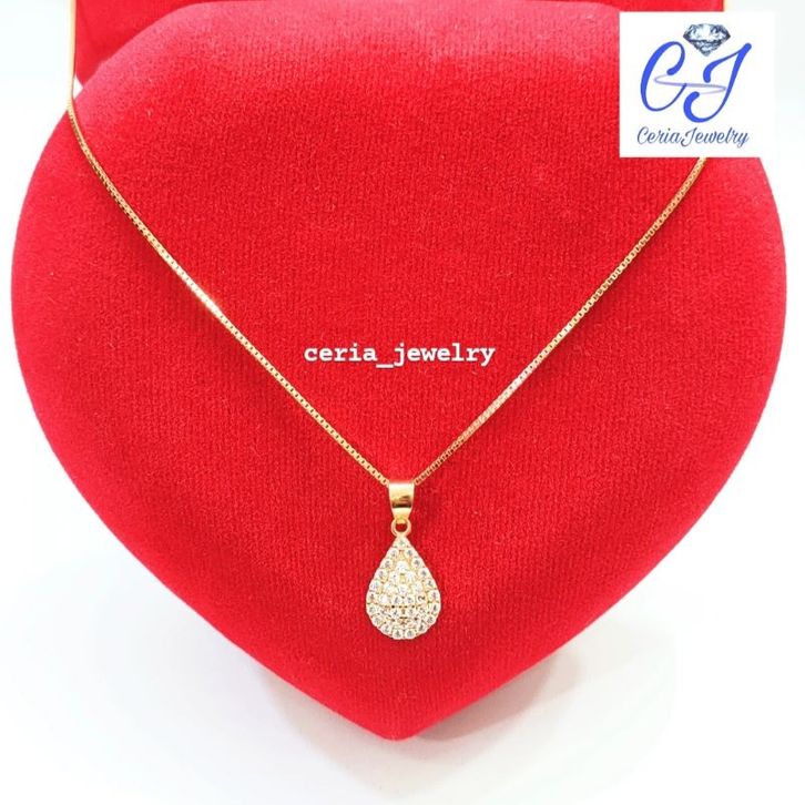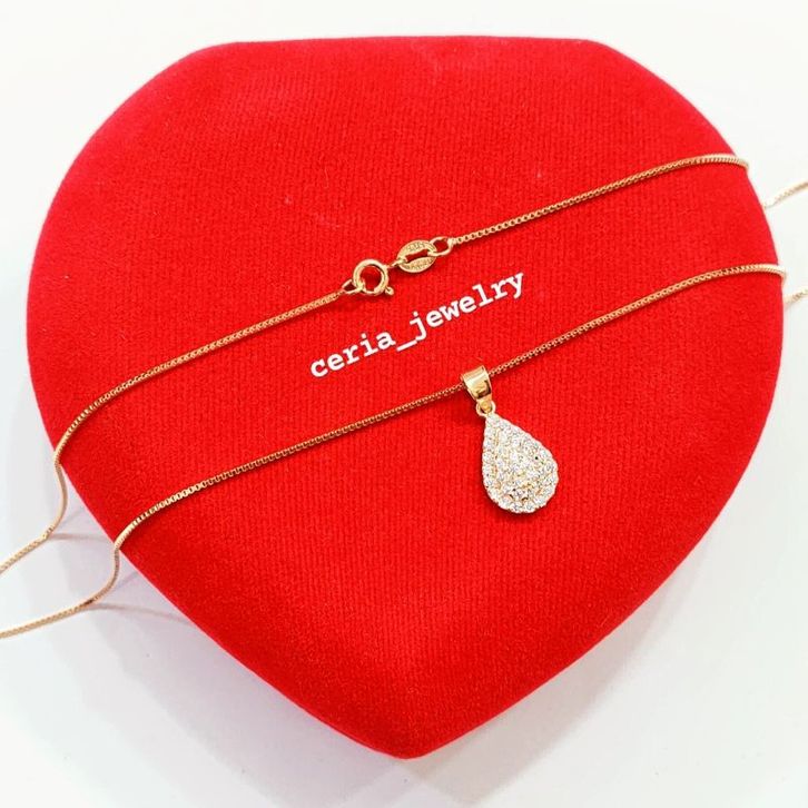 Set Kalungg Perak Asli Silver 925 Lapis Ems Model Itali + Lontin Oval - Perhiasan Perak Wanita