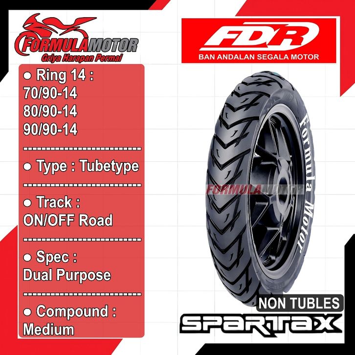 FDR Spartax Uk 70/90-14 Tubetype ( Dual Purpose ) - Ban Motor Matic Beat Mio Vario Scoopy Ring 14 Non Tubles