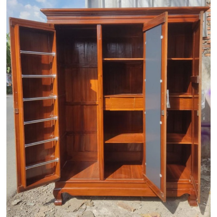[Star] LEMARI KAYU 3 PINTU JATI Lemari Pakaian Rak Hijab 3Pintu Kayu Jati
