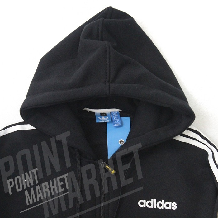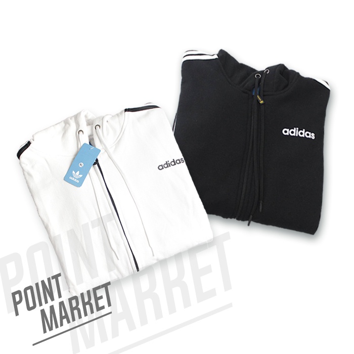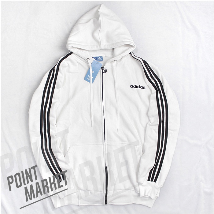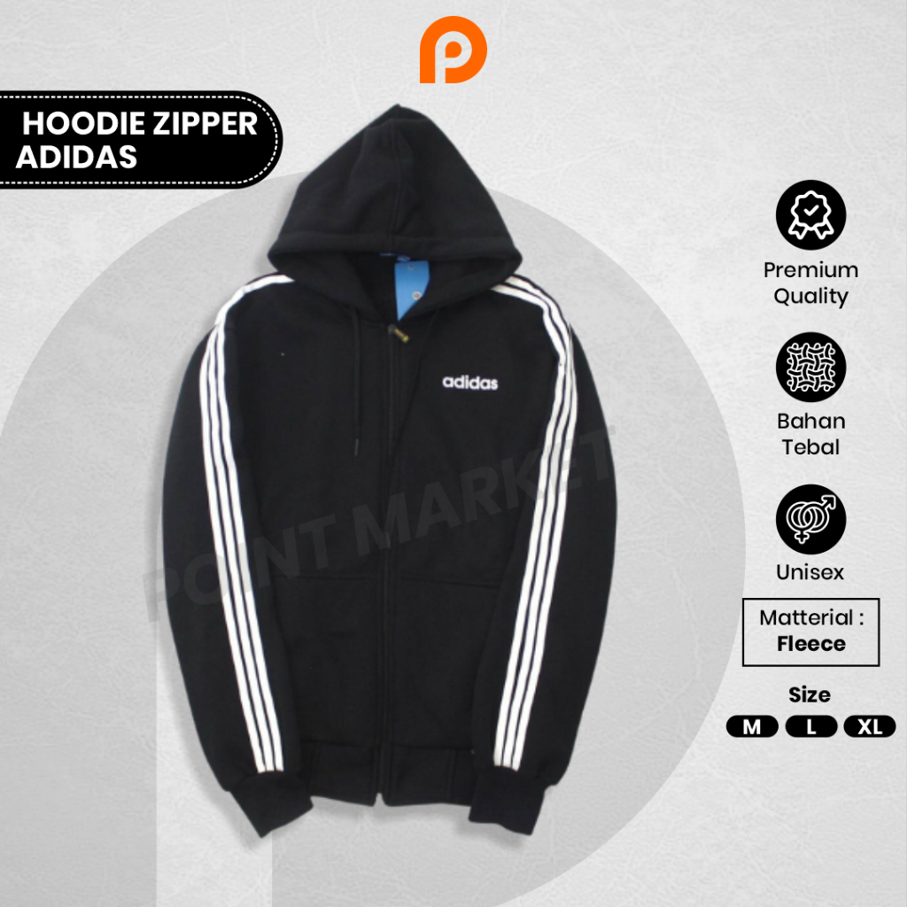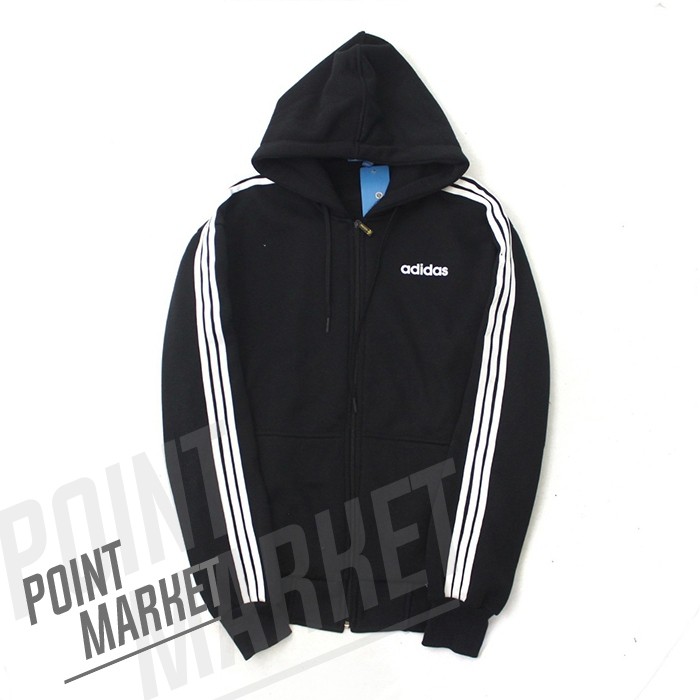 JAKET SWEATER HOODIE ZIPPER ADIDAS 3 STRIP HITAM