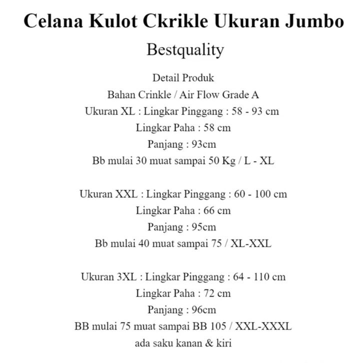 Celana Wanita Kulot Crinkle Celana Wanita Premium Celana Basic Kulot Bawahan Perempuan Kulot Jumbo Big Size Kekinian