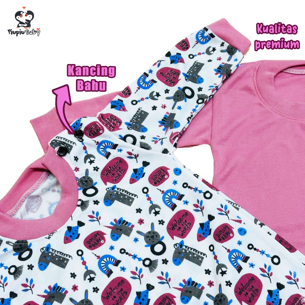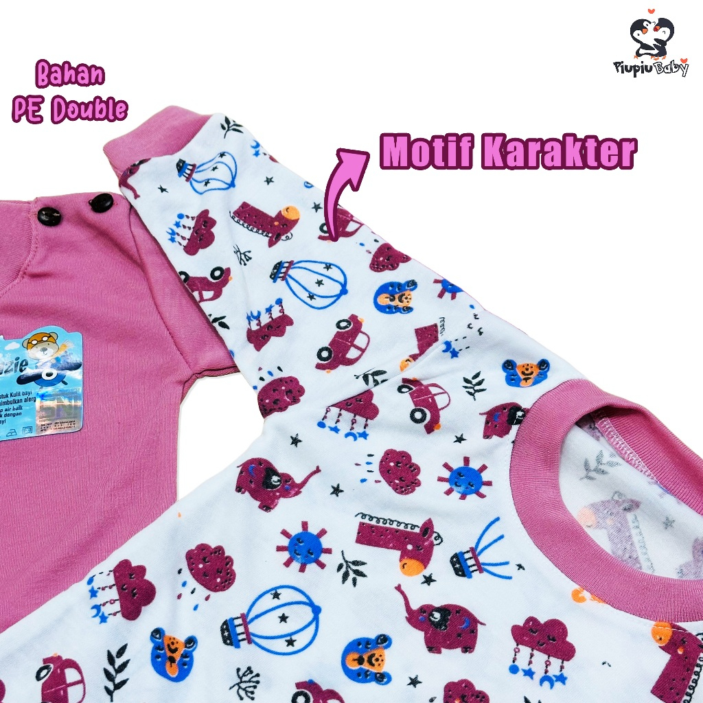 3 Set Baju Bayi Seri Dusty Panjang Kancing Bahu Usia 0-12Bulan Motif Karakter & Polos