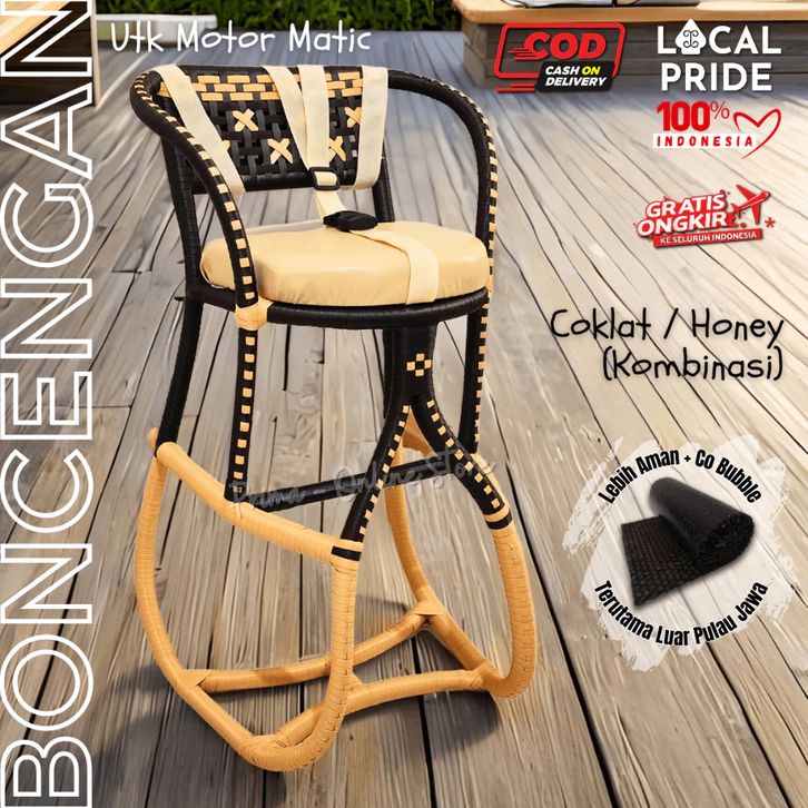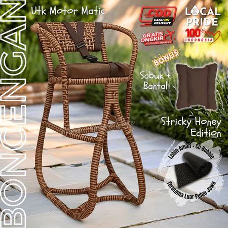 KURSI BONCENG ANAK FULL ANYAM ASLI PLUS SABUK JOK MOTOR METIK BANGKU ROTAN ANYAMAN SINTETIS / TEMPAT DUDUK BAYI BALITA -