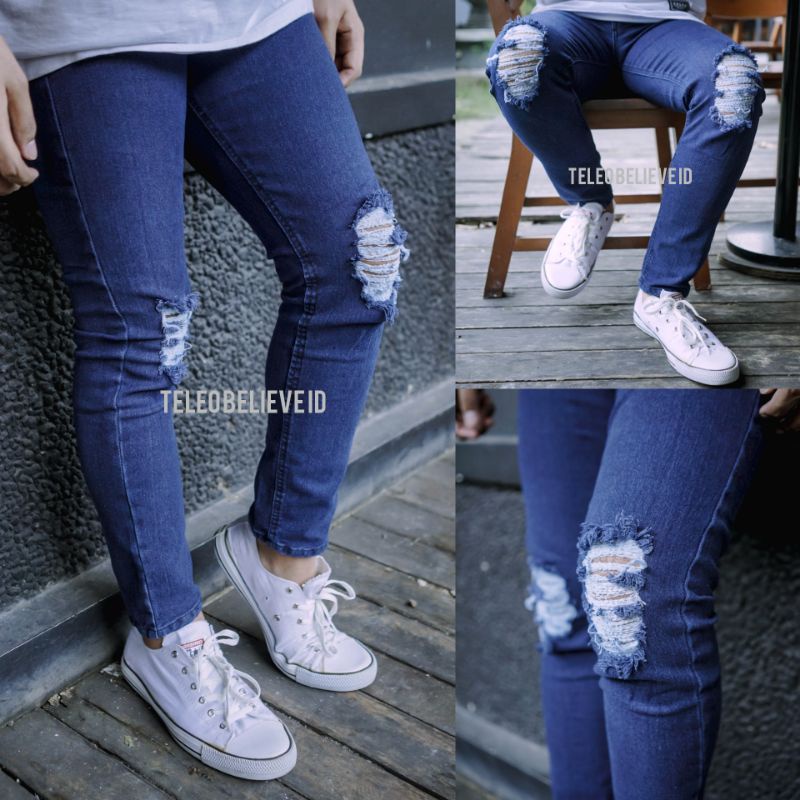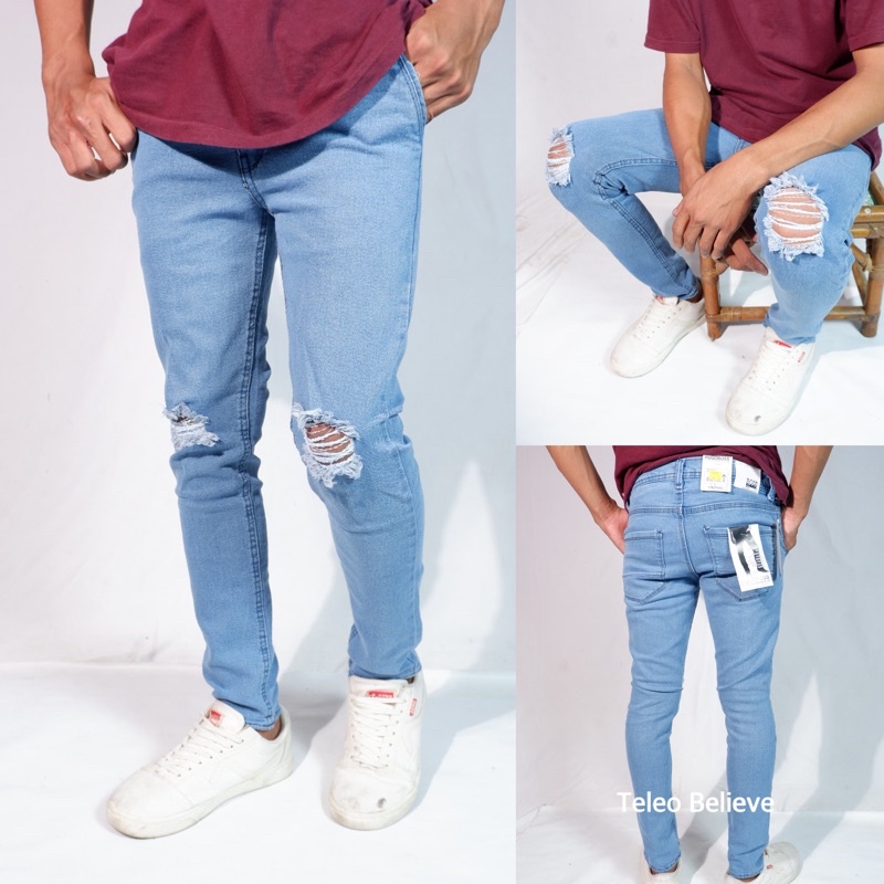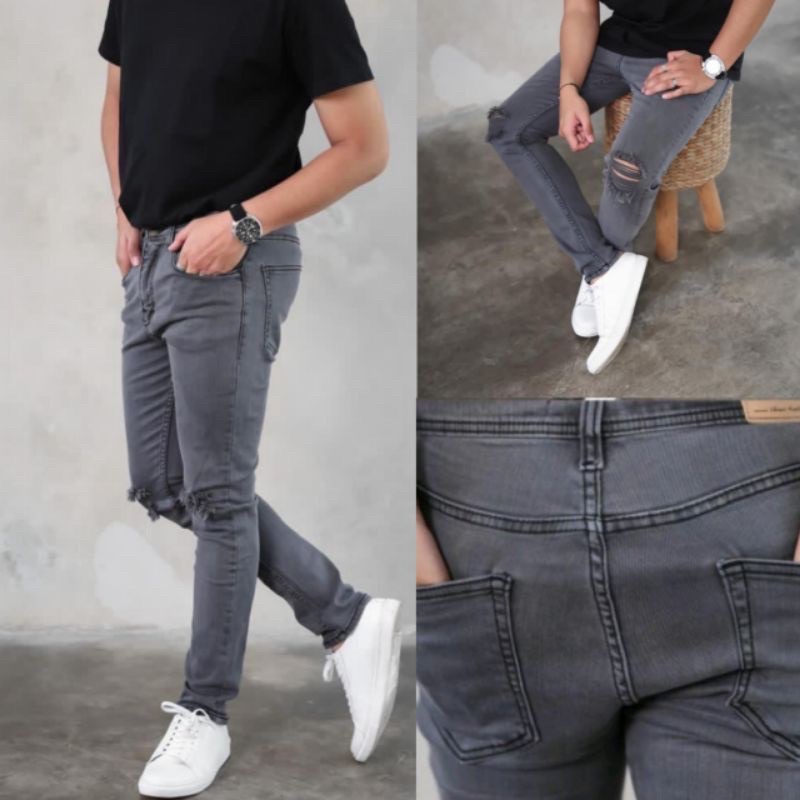 (Gratis Ongkir) Celana Jeans sobek lutut robek ripped Hitam destroy premium