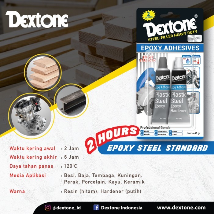LEM BESI EPOXY PLASTIC STEEL DEXTONE - PUTIH - HITAM