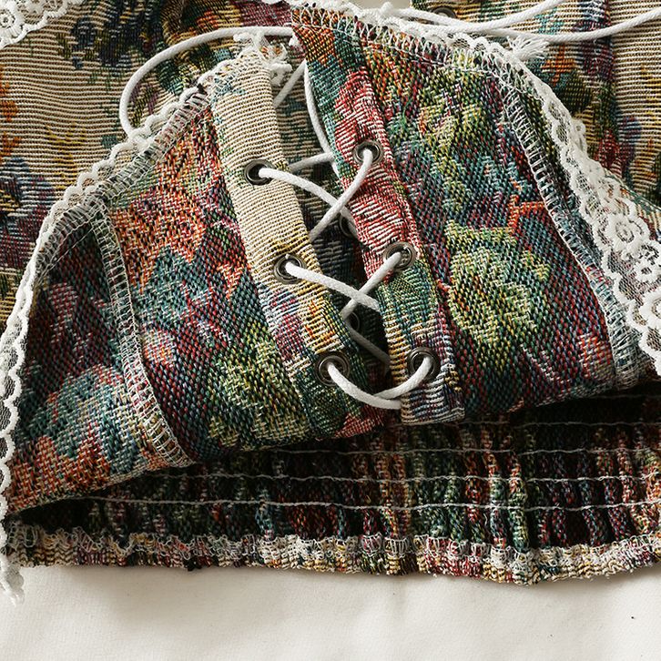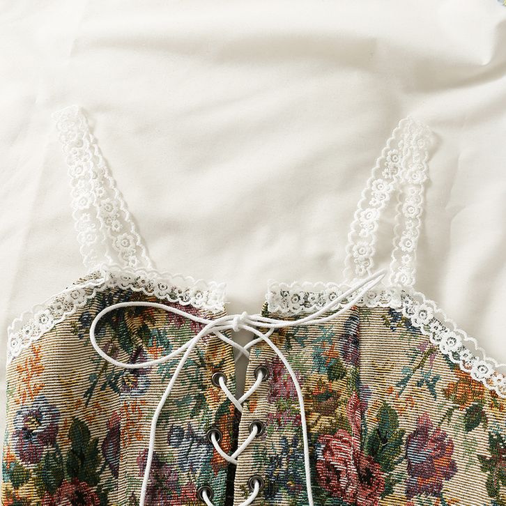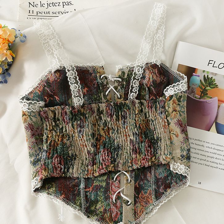 Tank Top Crop Wanita Korean Style Tangtop Lace Floral Crop Top Wanita Vintage Kekinian Atasan Wanita Casual Staylish