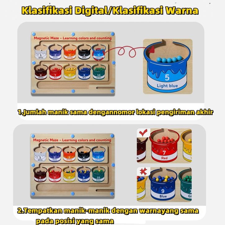 MAINAN EDUKASI PAPAN MAGNETIK BERHITUNG MAGNETIC MAZES GAME MAINAN SORTING WARNA MAGNET KAYU /KLASIFIKASI WARNA MAZE