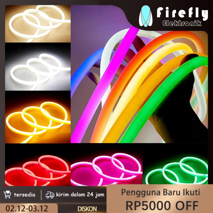 LAMPU LED NEON FLEX SELANG 220V METERAN FLEXIBLE SIGN STRIP OUTDOOR - KLEM NEON FLEX