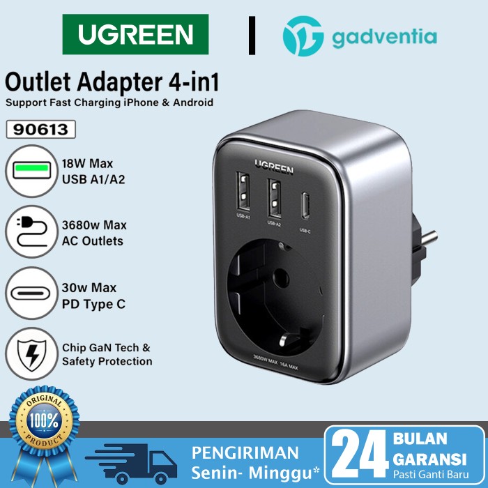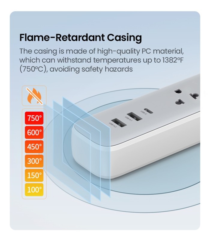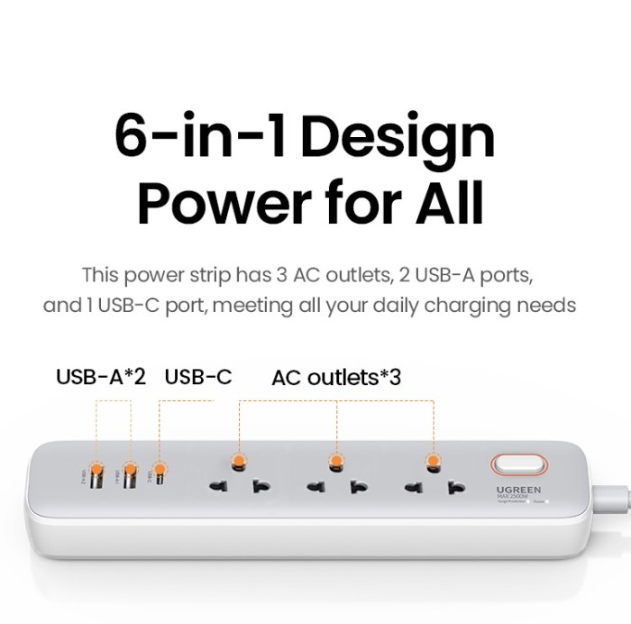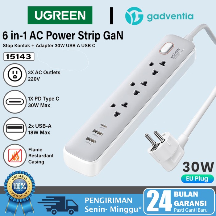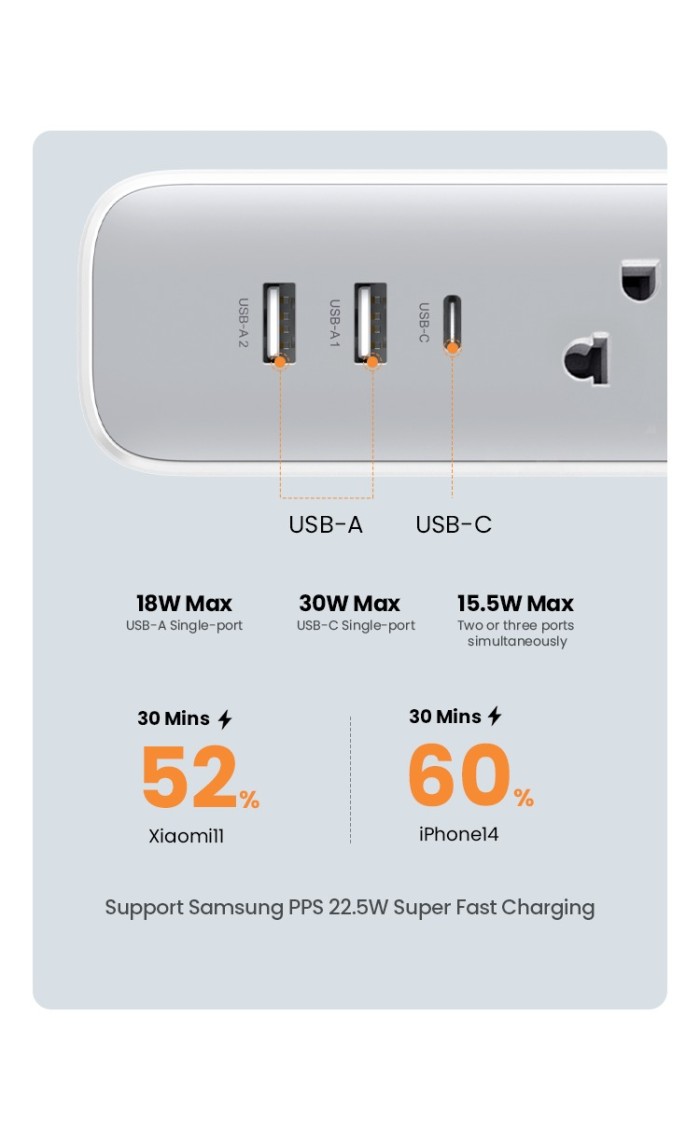 STOP KONTAK UGREEN MI SMART POWERSTRIP COLOKAN 3 PORT + USB C 30W FAST - 90613 GAN 30W