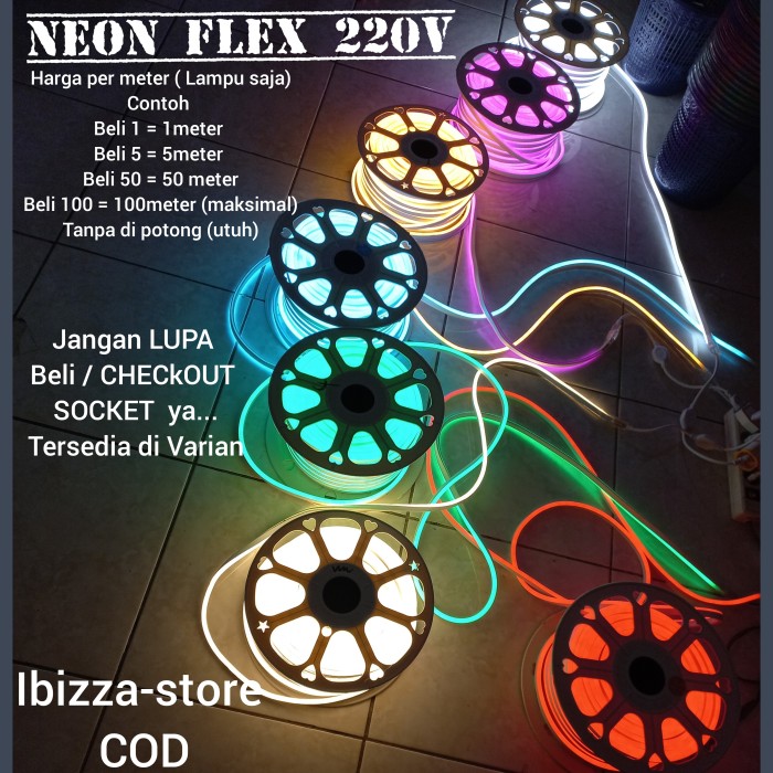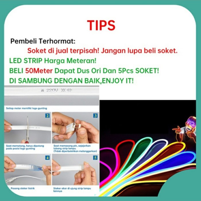 LAMPU SELANG LED NEON FLEX / NEON FLEXIBLE PER METER 220V IP65 - ICE BLUE