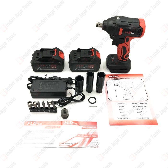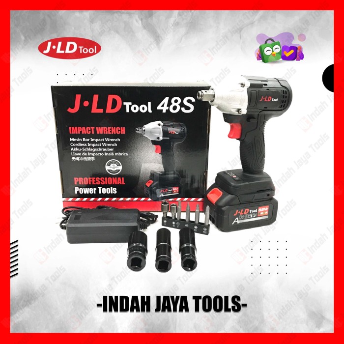 J.LD 48V IMPACT WRENCH CORDLESS - MESIN IMPACT WRENCH BATERAI CHARGER - HITAM 1 BATERAI