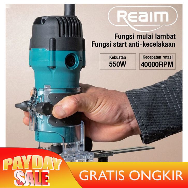 CICILAN/ REAIM WOOD TRIMMER 550W 1/4" 6 MM MESIN PROFIL ROUTER TRIMMER KAYU - REAIM XBJ001