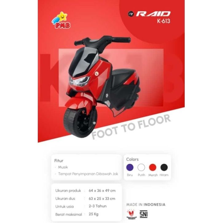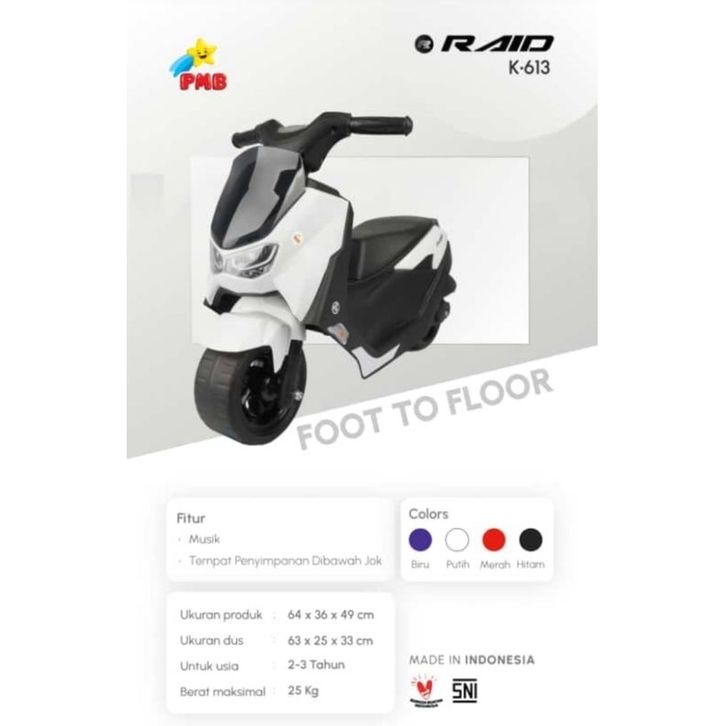 Tolocar motor Nmax mode balance bike Musik K613 Raid Nmax /K611 scoopy Motor Plastik Anak/ mainan
