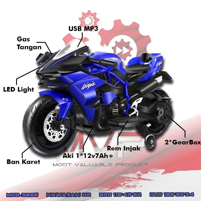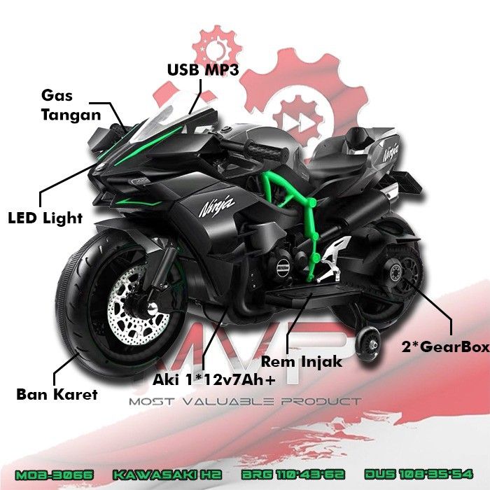 MAINAN MOTOR AKI ANAK KAWASAKI H2 MOB-366