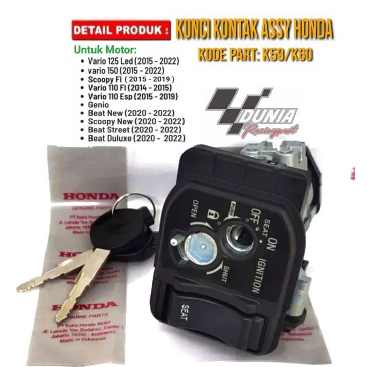 KUNCI KONTAK + TOMBOL JOK K59/K60 SCOOPY 2015-2020 VARIO 125/150 LED,VARIO 110 FI