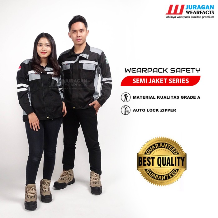 JURAGAN WEARFACTS - WEARPACK SAFETY WARNA HITAM KOMBINASI ABU - XL